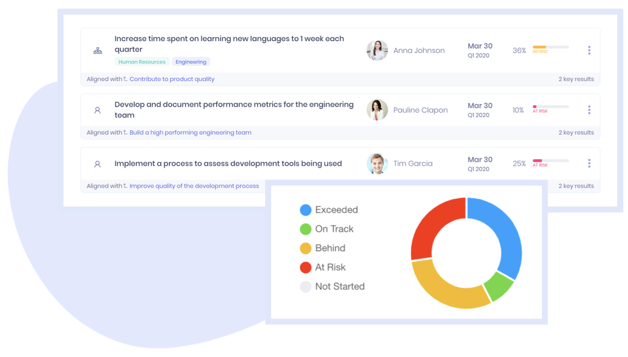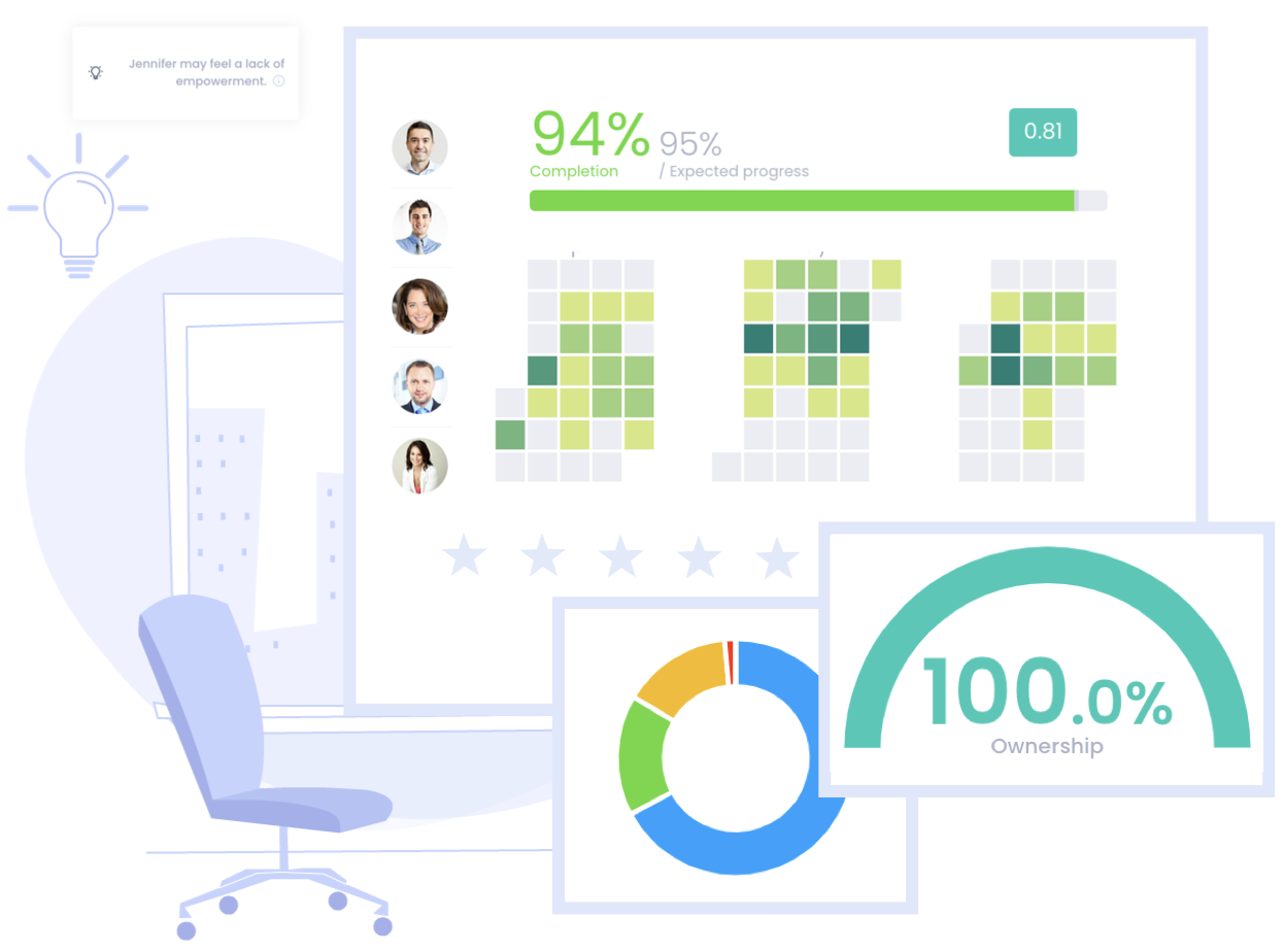 Strive for excellence and take the pulse of your organization with detailed reports based on focus areas, goals and OKRs progress, team overload, activity and many more.