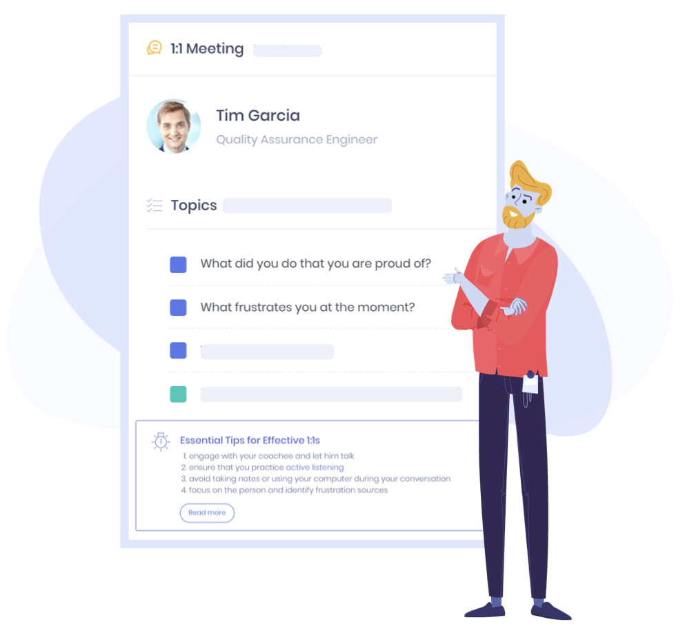 Enable managers to focus on supporting their people's growth by offering constructive, on the go feedback and coaching for performance. Employees need to know that their manager cares about them as a person, knows what they are working on and is available to them when they need support.